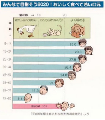 手足の筋肉が衰えるのと同様、食べるときに働く筋力も徐々に衰えていきます。口腔の機能が急激に低下しないよう、機能を保つためにも、うがいを励行したり、歯をみがくときにも、口腔周囲の筋肉(咀嚼筋)のストレッチを欠かさずすることが大切です。他の方と楽しく話し合うチャンスをたくさんつくることも、食べる機能を保つことに役立ちます。